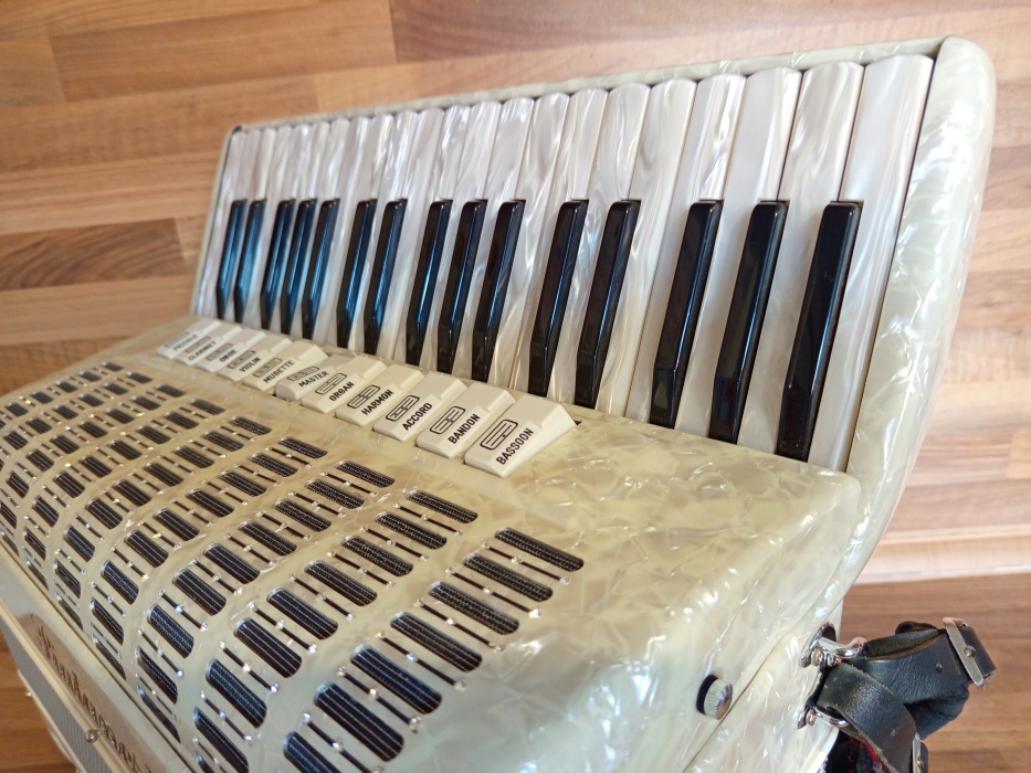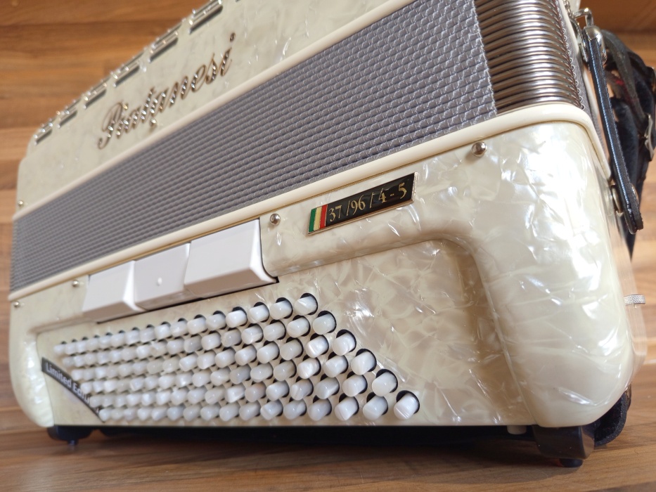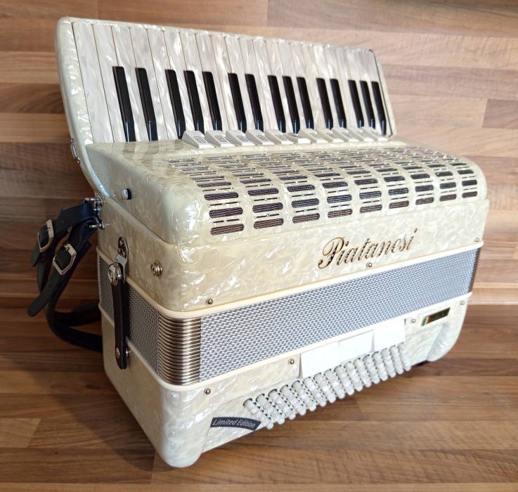 NOVÝ akordeon Piatanesi 37/96/4-5 - limitovaná edice. Osazen hlasy typo a mano. Čtyřhlas v 96ti basu. Špičkový akordeon se špičkovým zvukem. Nástroj je NOVÝ. Kompaktní, lehoučká harmonika. Cena v obchodu 5000 EUR. Dovezeno přímo z Itálie. Obdoba modelu Beltuna Prestige IV 96, Scandalli Air IV 96 apod.